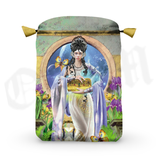 Bolsa de cetim estampada. Tematica mistica perfeita para guardar minerais, tarots, runas, pendulos, entre outros.